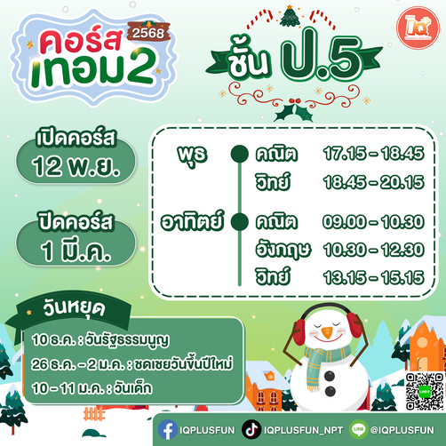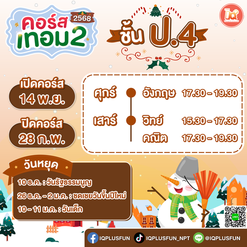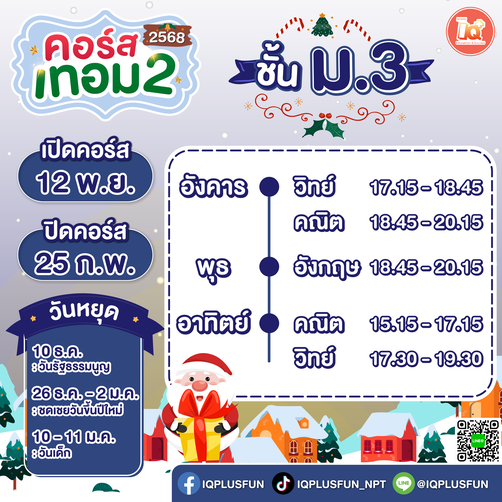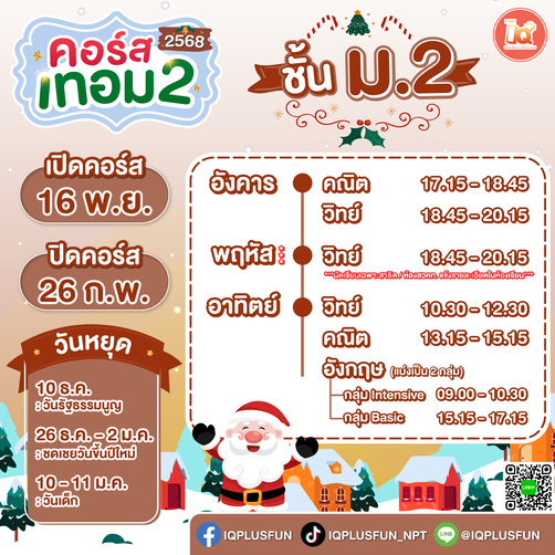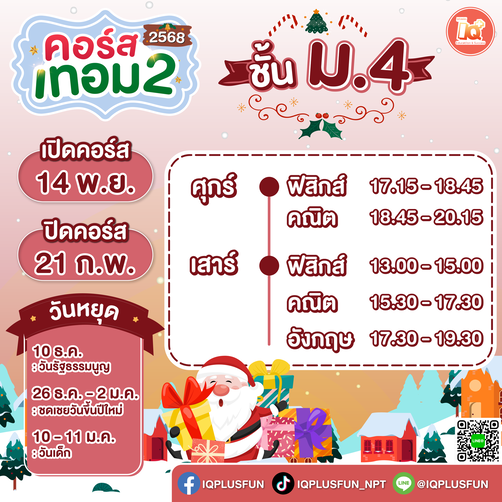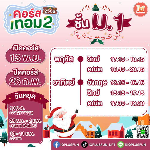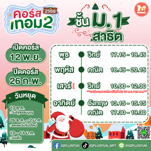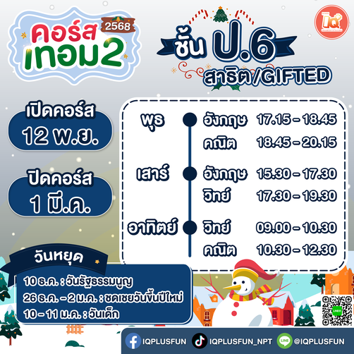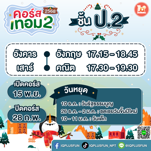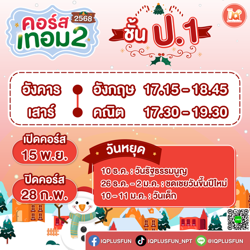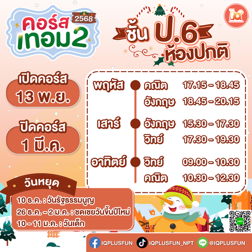 ออกแล้ว!!! ตารางเรียนเทอม 2/2568 ไอคิวพลัส นครปฐม