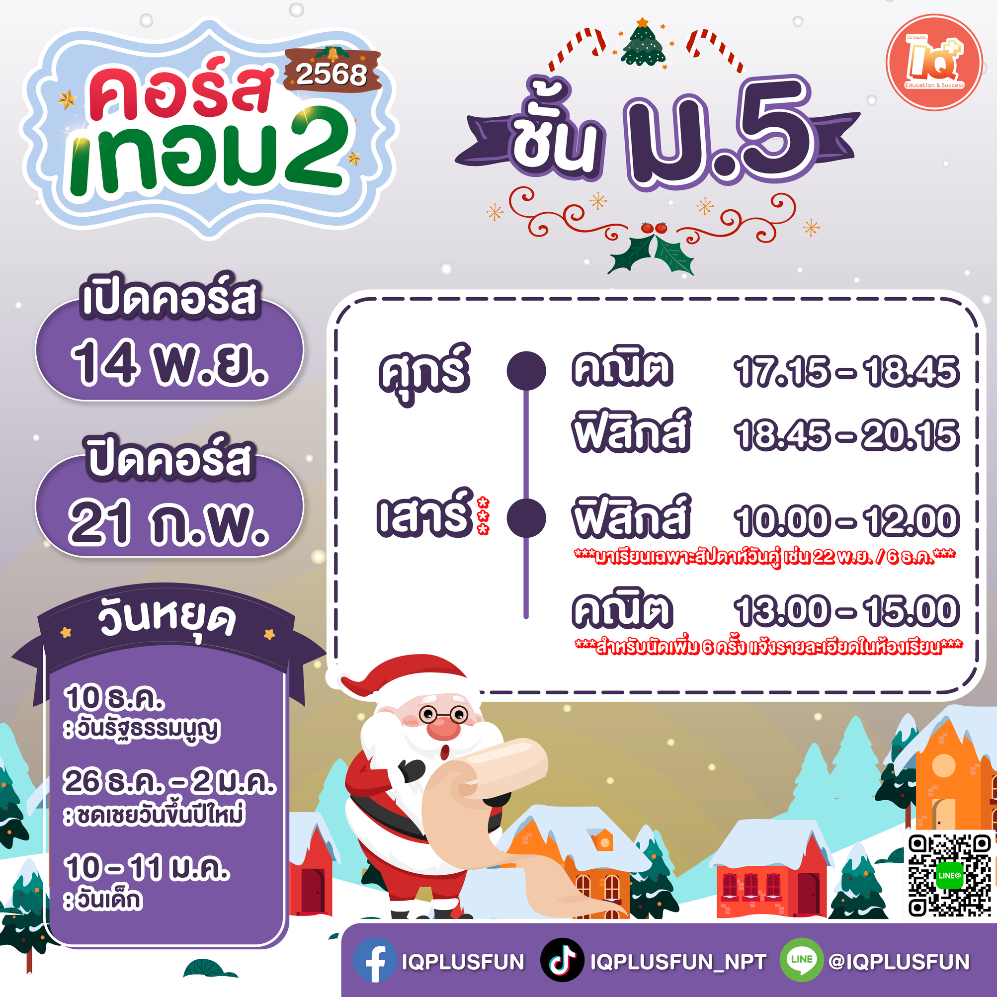 ตารางเรียนเทอม 2/2568 นครปฐม โรงเรียนกวดวิชาไอคิวพลัส เปิดคอร์สครบทุกระดับชั้น ม.ต้น-ม.ปลาย พร้อมติวเตอร์คุณภาพ ลงทะเบียนวันนี้!