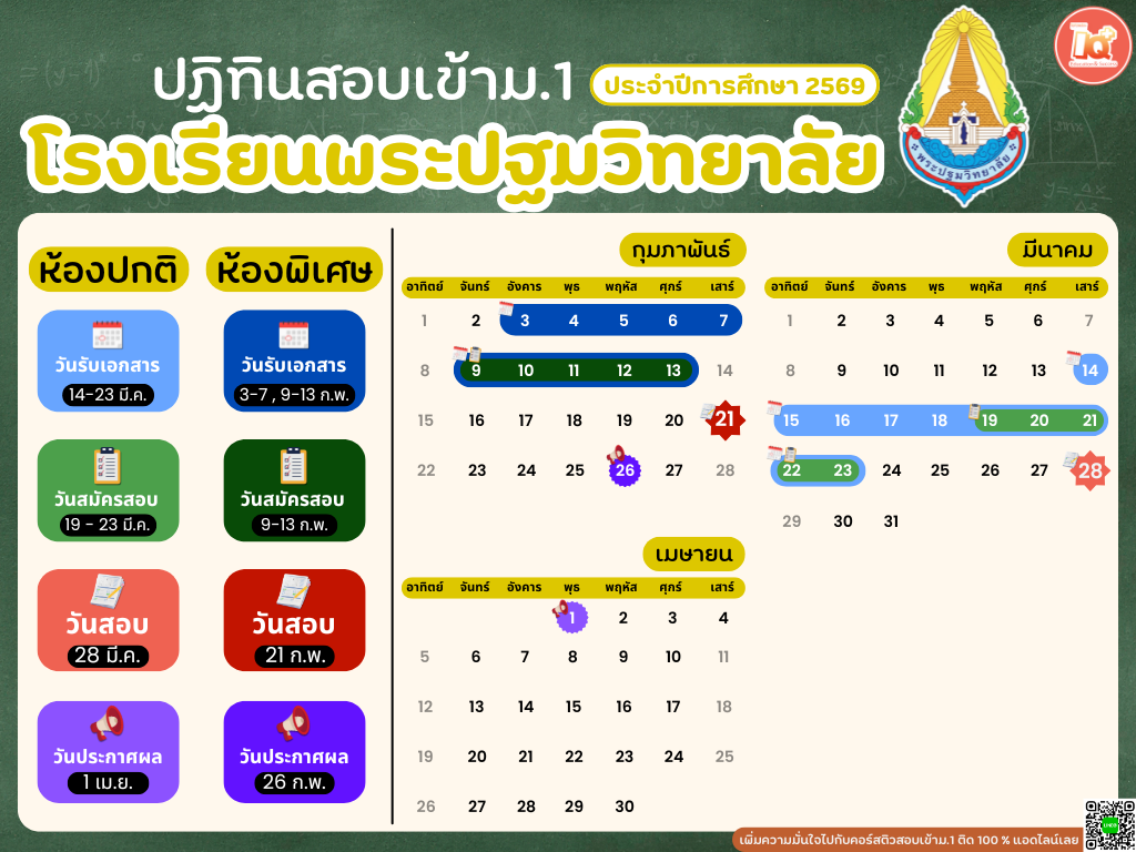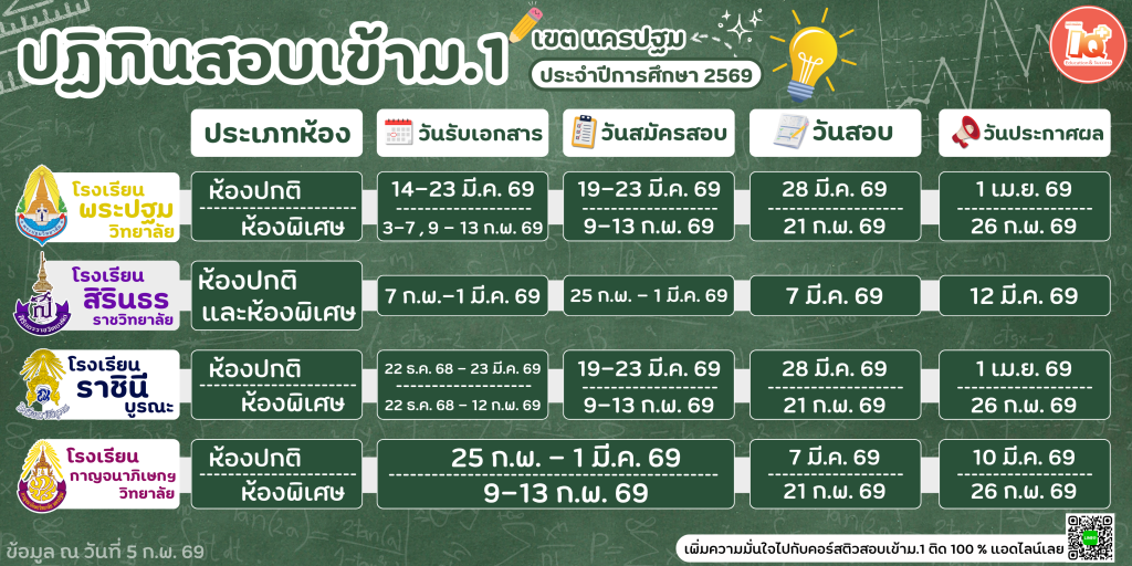 ออกแล้ว! ตารางสอบเข้าม.1 โรงเรียนดัง เขตนครปฐม อัปเดตล่าสุด